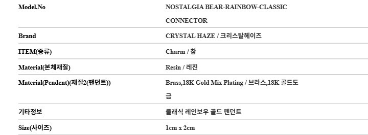 1. 소재 / 순도 / 밴드재질 멀티컬러(기타) / 쥬얼리 - 레진 / 팬던트 - 브라스