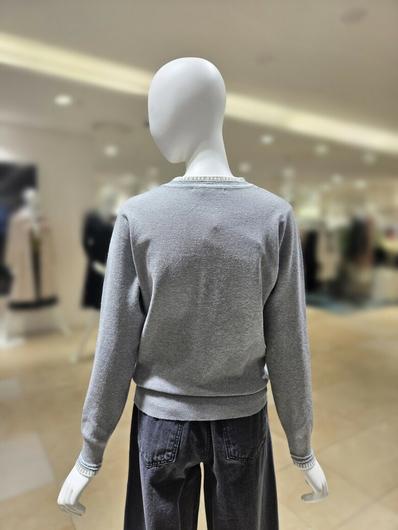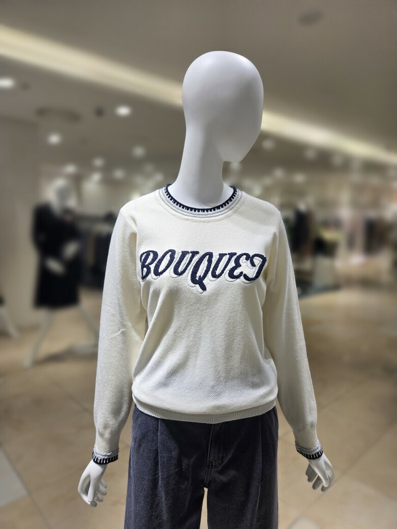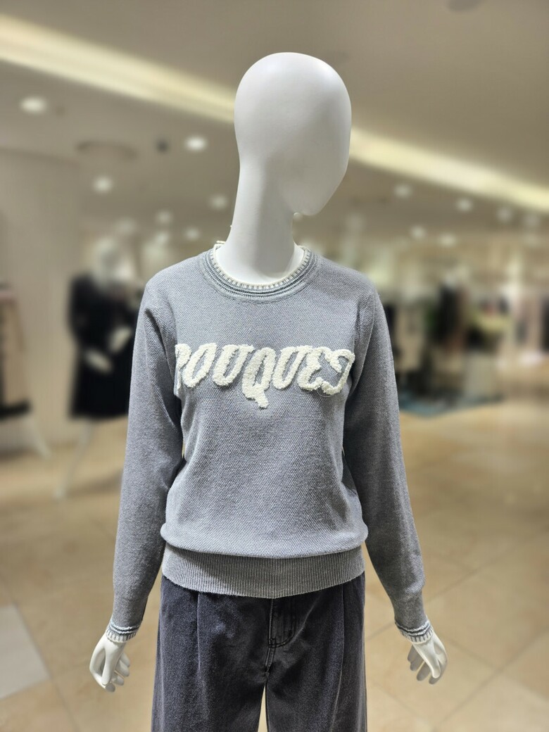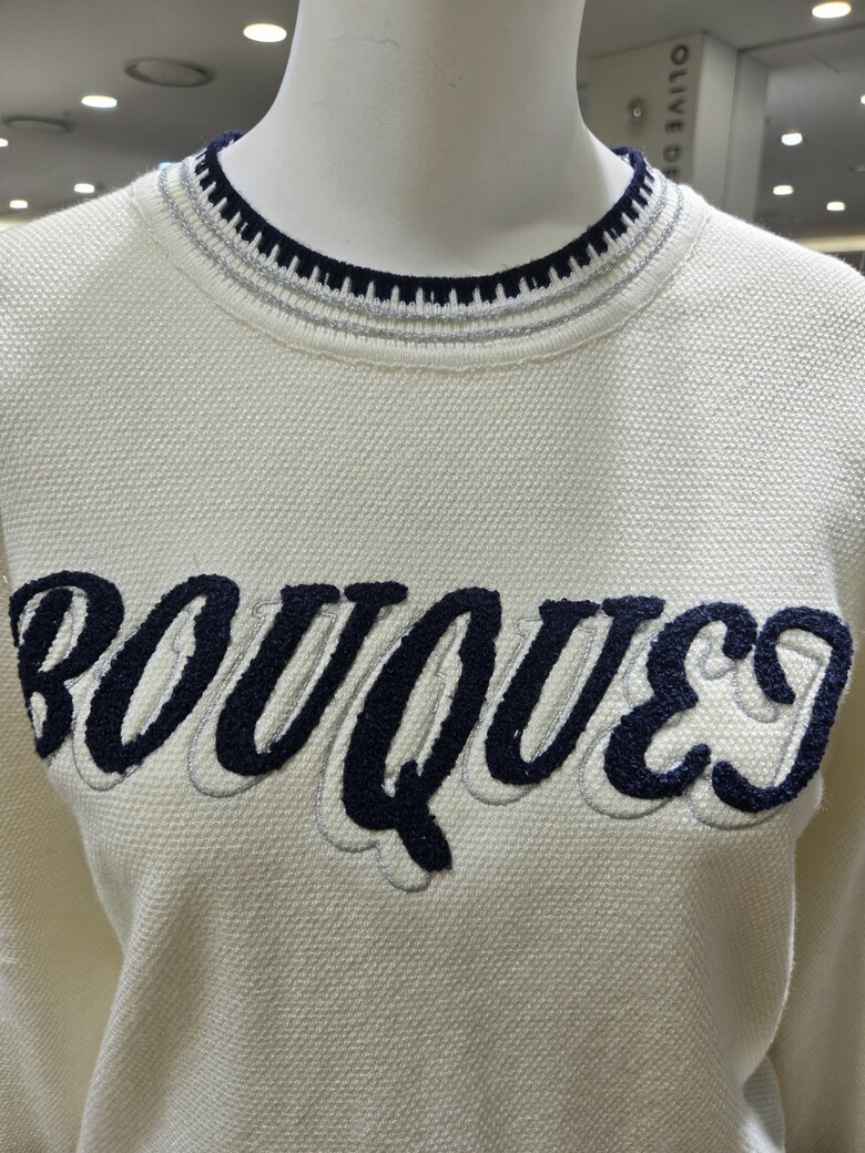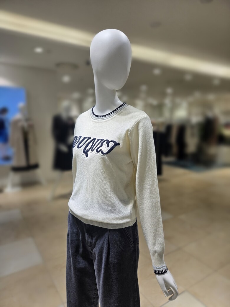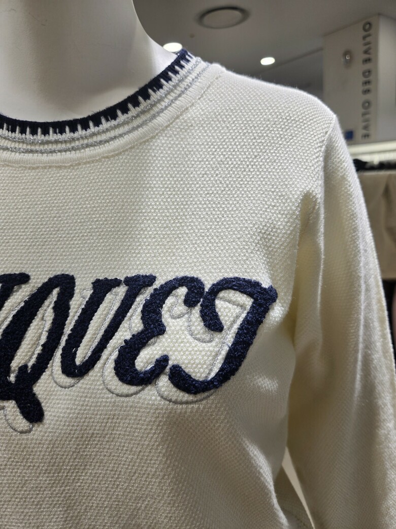 [올리브데올리브] 메탈 배색 부클 레터링 패치 라운드 니트 YK5SP471