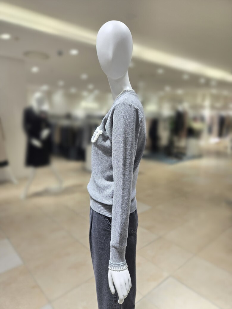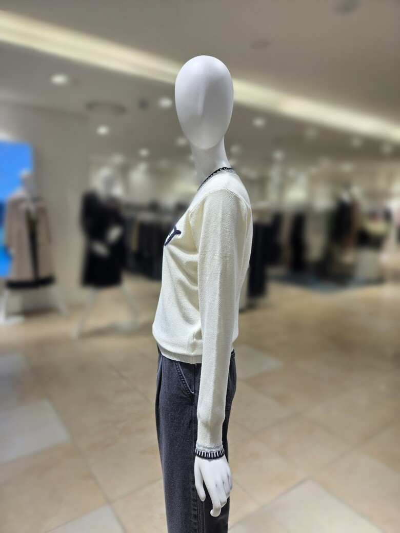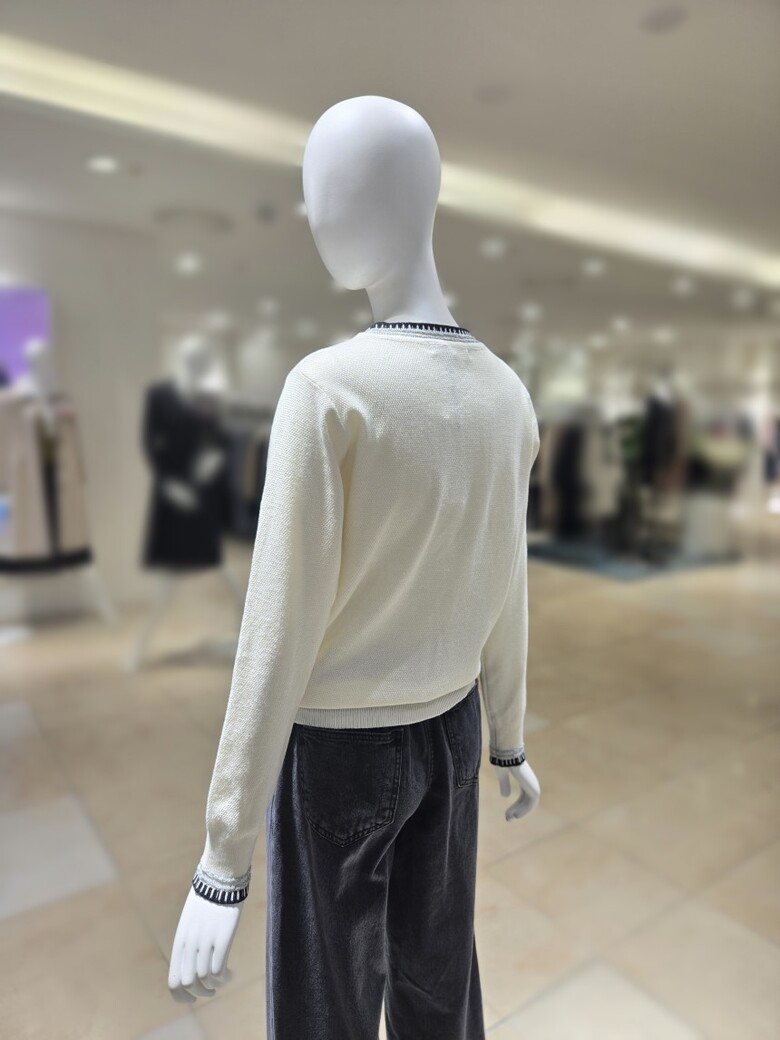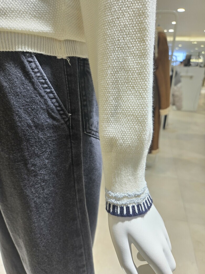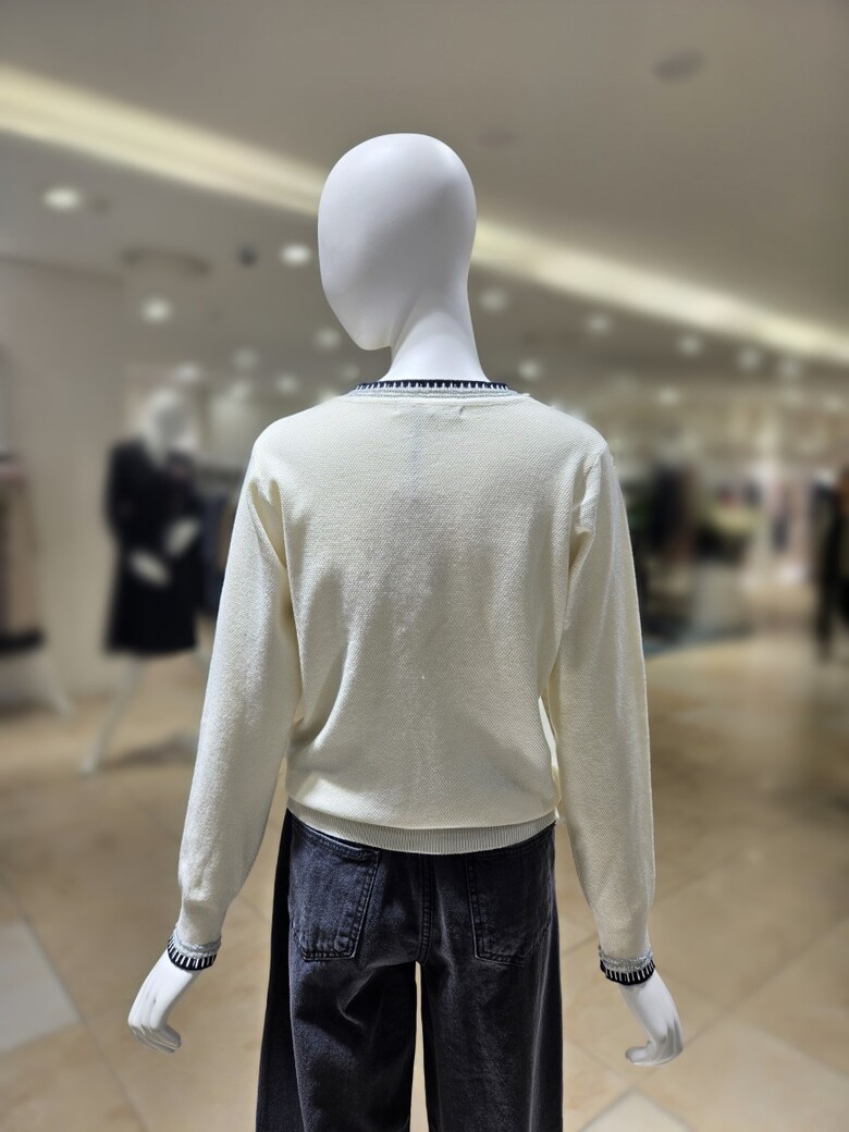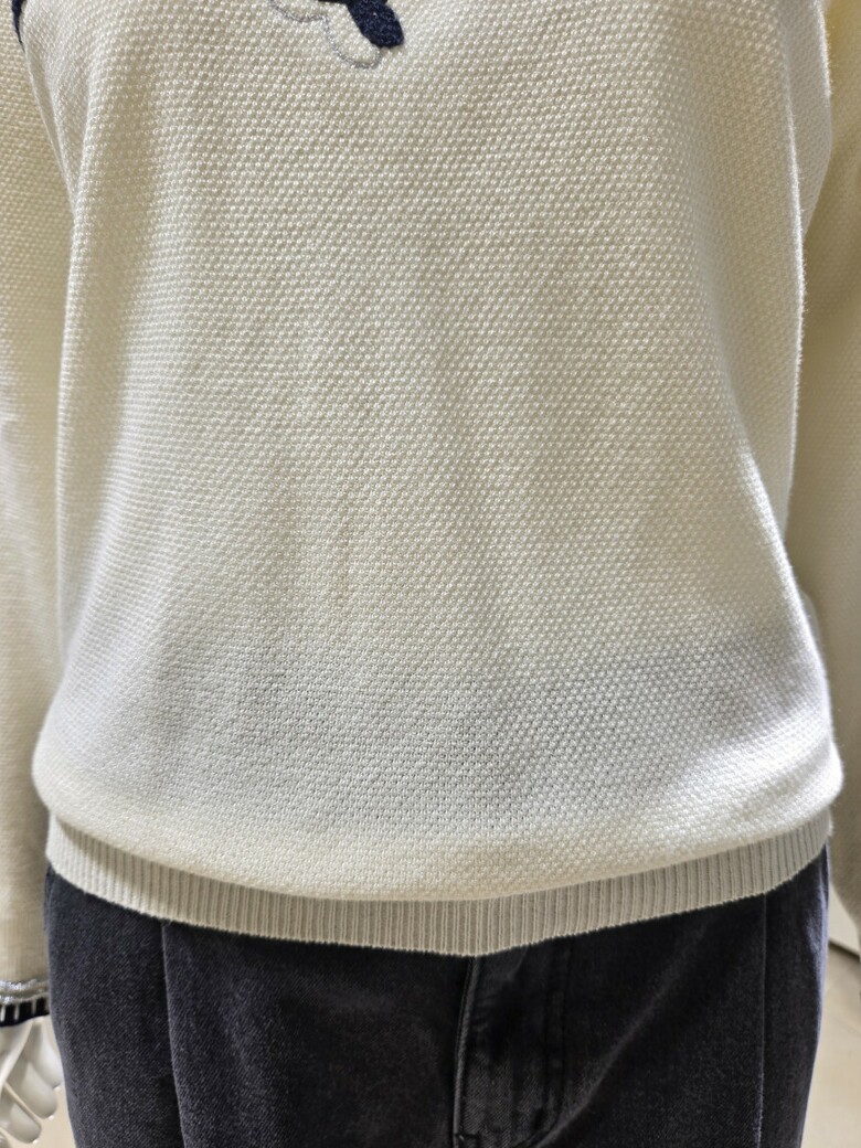 [올리브데올리브] 메탈 배색 부클 레터링 패치 라운드 니트 YK5SP471