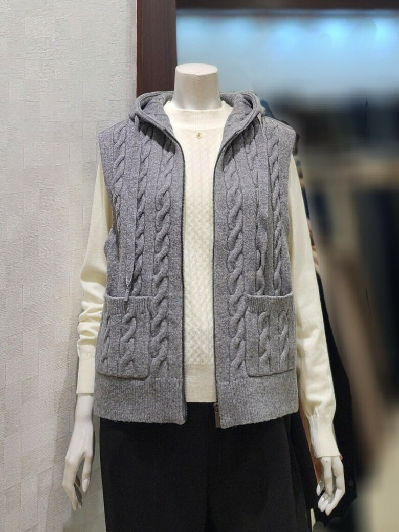 [벨라디터치] V3F4VT24 니트 배색 패딩 조끼