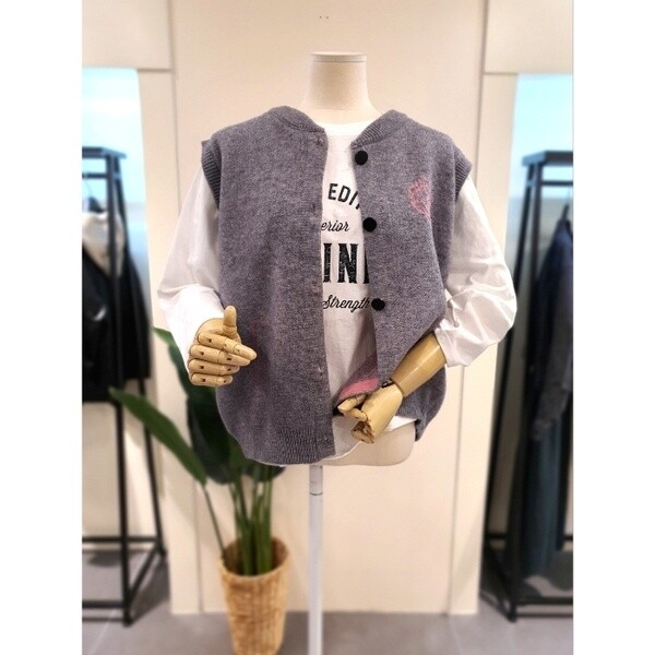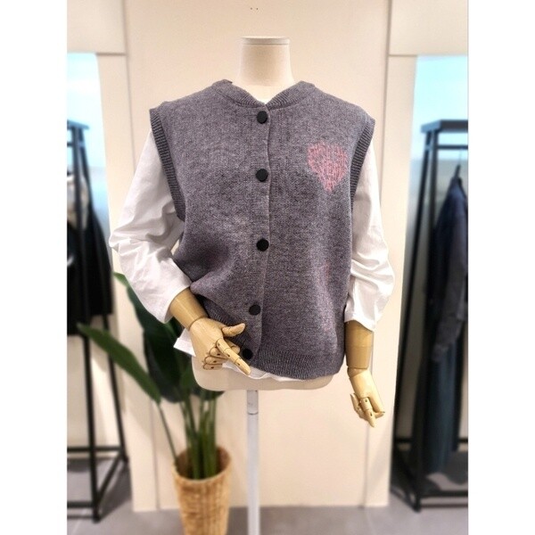 KNVTPA01GR_하트 버튼 니트 조끼 그레이