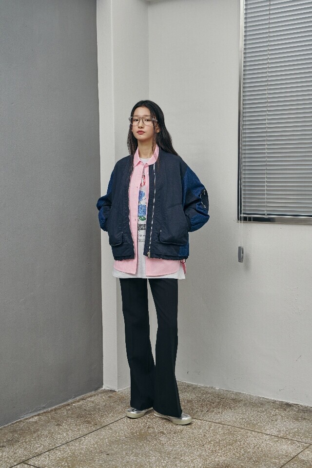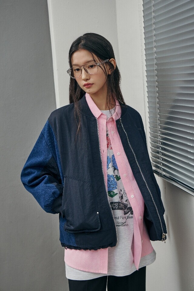 AR1WZ261 데님 배색 항공 점퍼