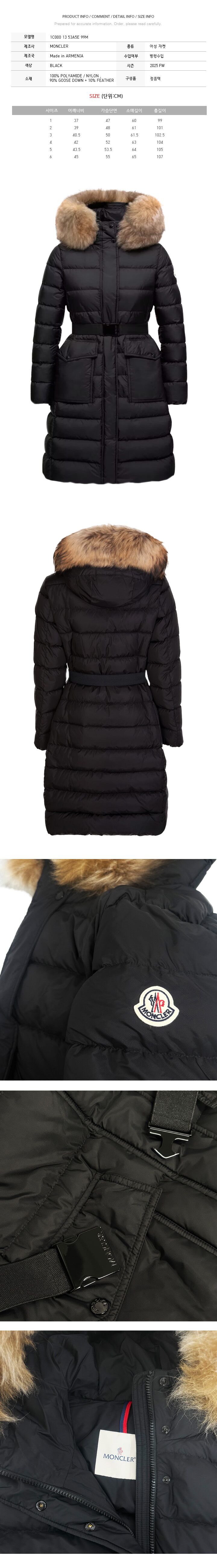 몽클레어 25FW KHLOESSE 벨티드 후드퍼 롱 패딩자켓 블랙 1C000 13 53A5E 99M