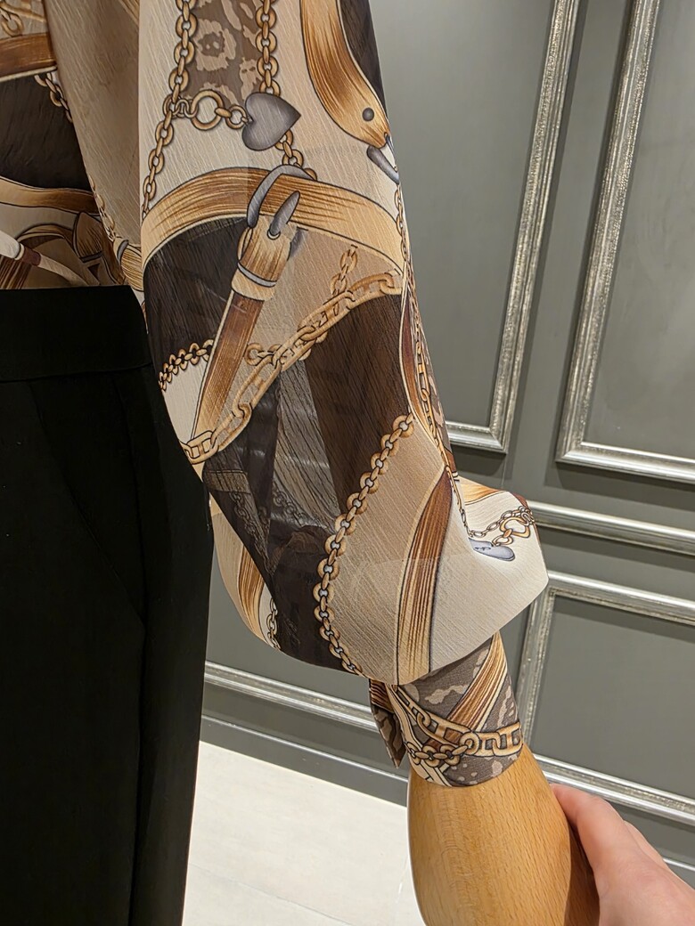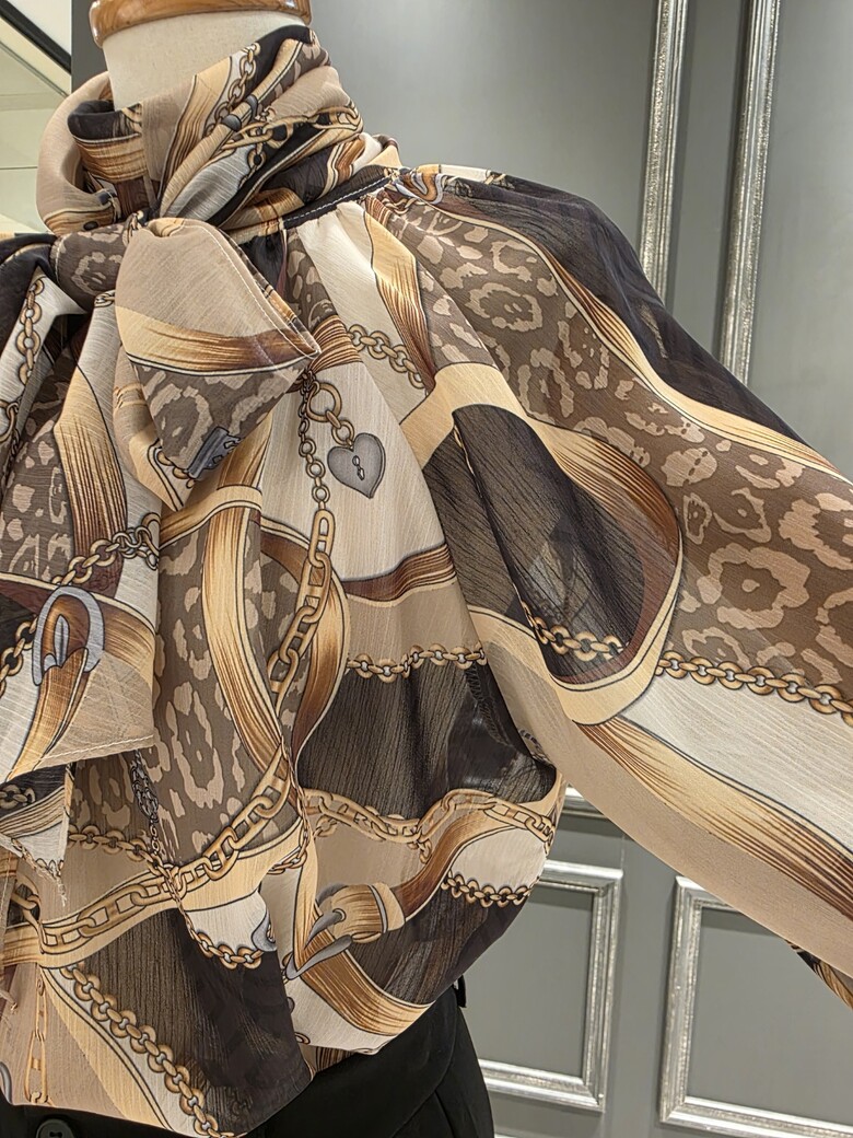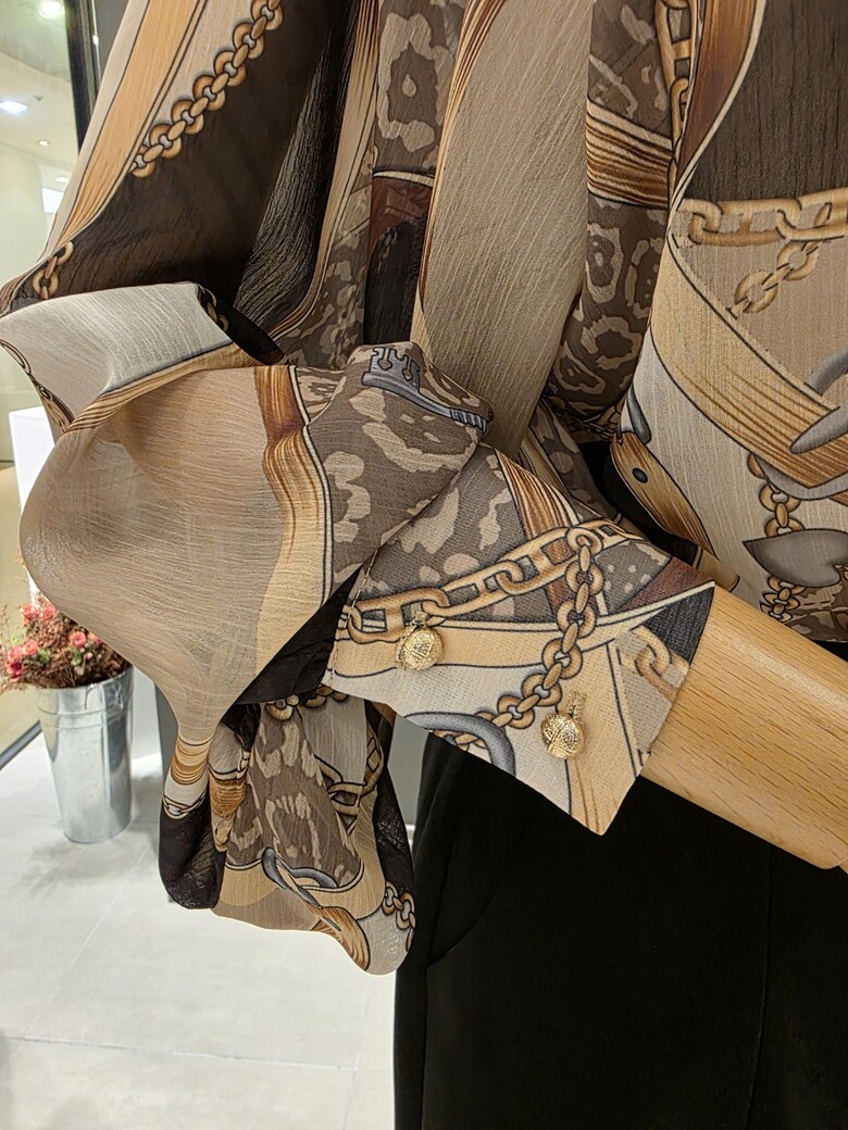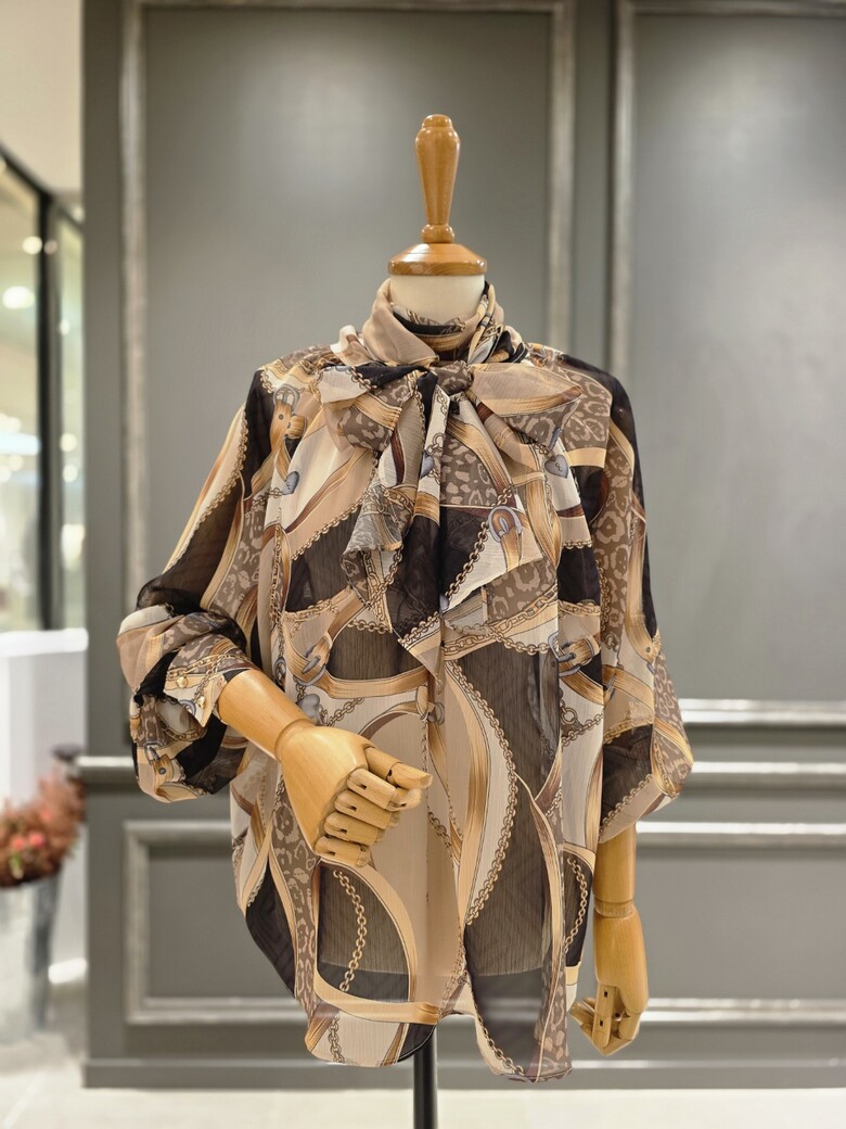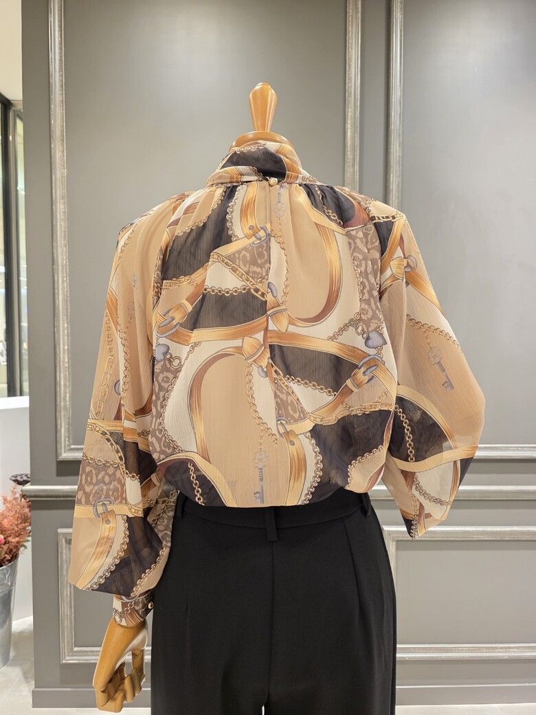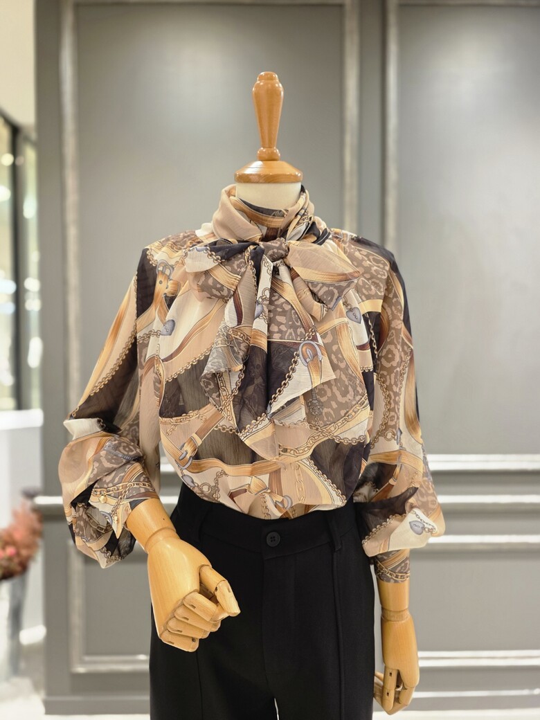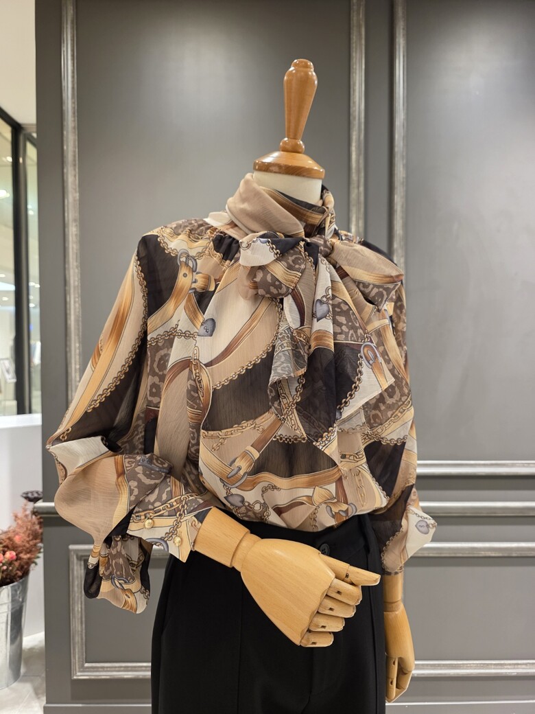 A59WBL500_쉬폰 리본 패턴 블라우스