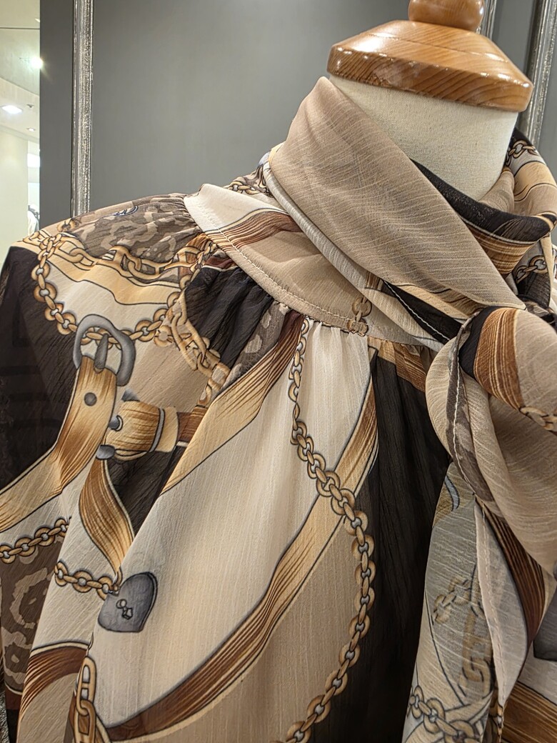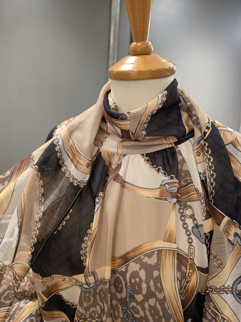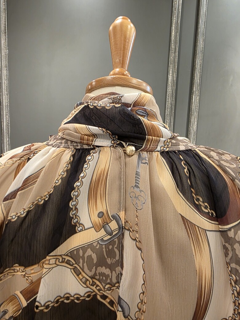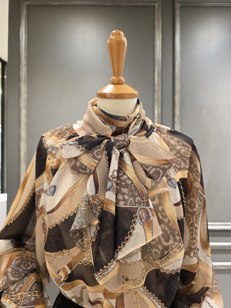 25년 F/W 신상품 넥주름 디자인의??패턴디자인의 리본 블라우스입니다? ?
