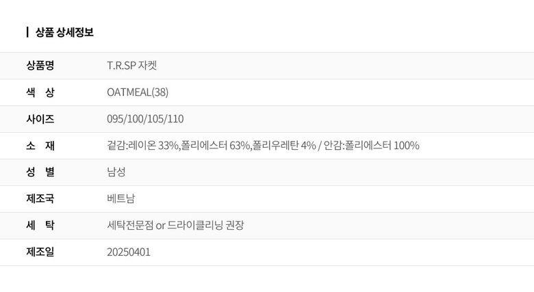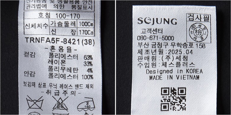 제품소재 : 폴리에스터63%, 레이온33%, 폴리우레탄4%