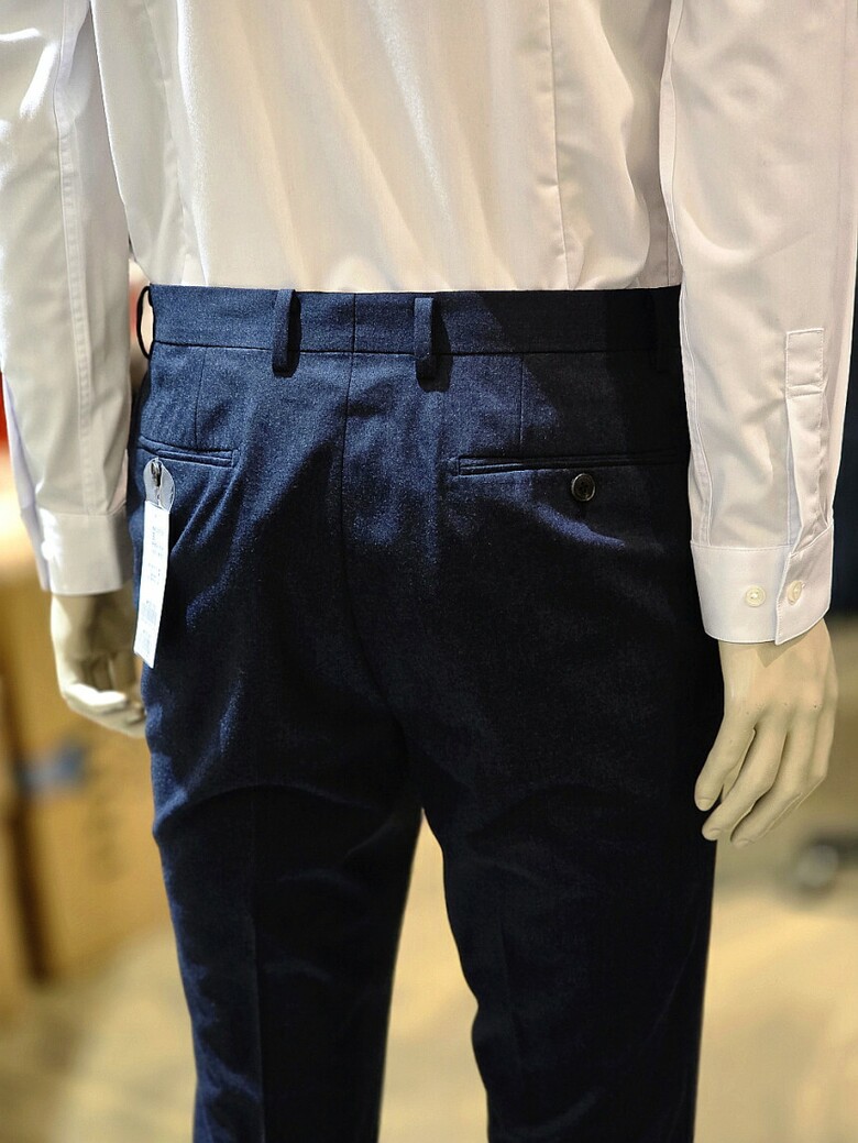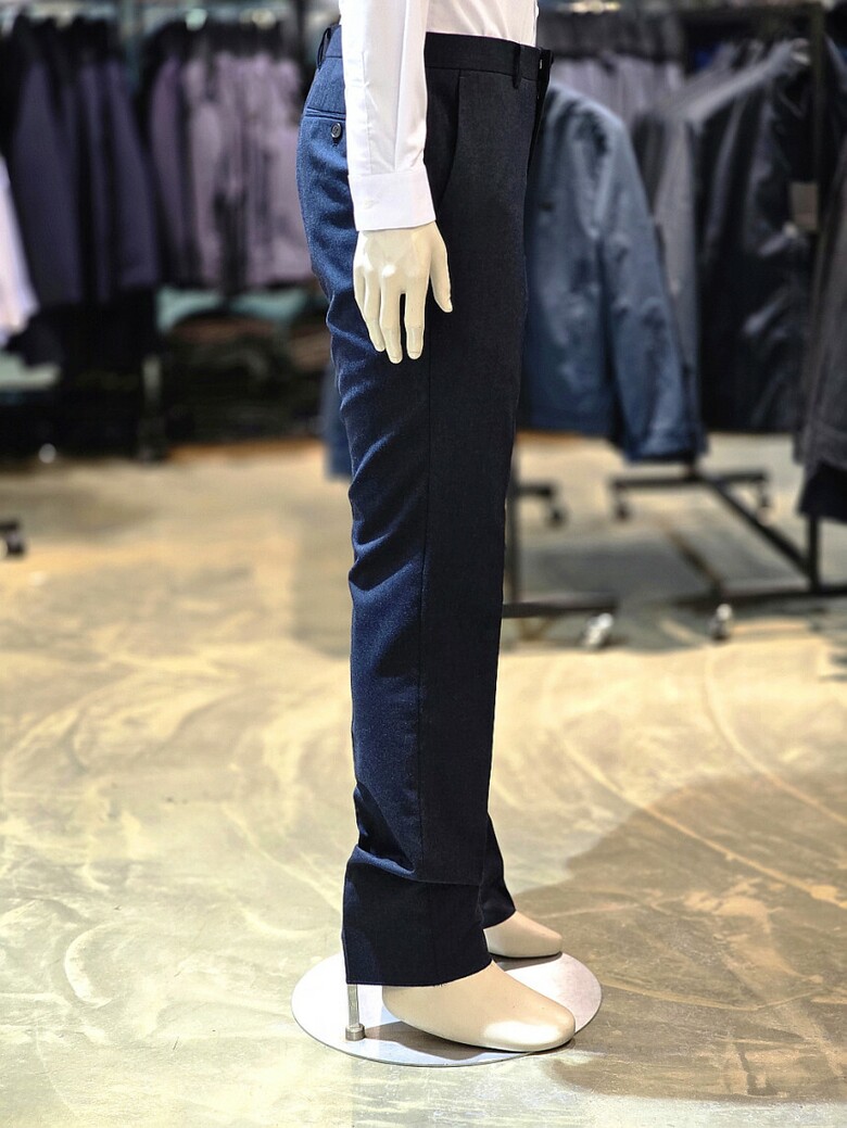 깔끔한 스트레이트 핏과 은은한 조직감이 조화를 이루어 단정하고 세련된 인상을 주며,