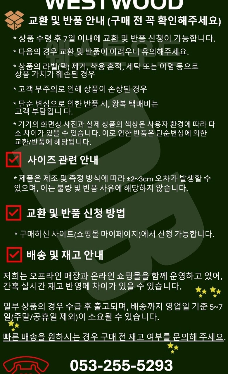 9. A/S 책임자와 전화번호 AS 및 기타 문의 사항은 해당 매장 [김진곤,053-255-5293] 으로 전화주시면 감사하겠습니다.