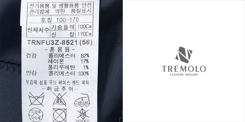 제품소재 : 폴리에스터82%, 레이온17%, 폴리우레탄1%
