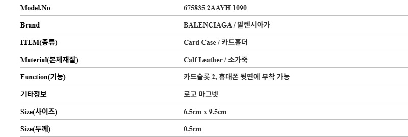 발렌시아가 지갑 675835 2AAYH 1090 캐시 로고 마그넷 카드지갑 당일발송
