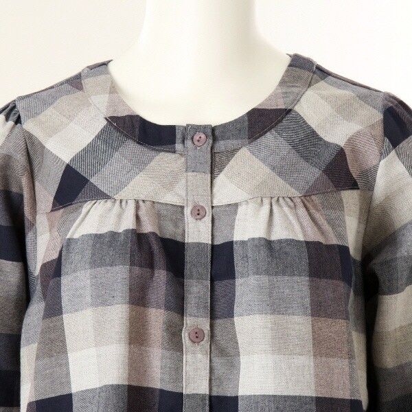 차분한 네이비 블루의 체크 선염이 고급스러우며