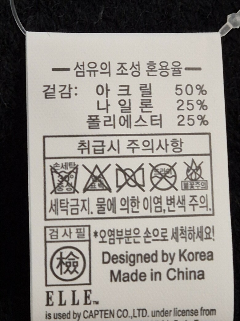 | 2. 소재 | 겉감:아크릴 50%, 나일론 25%, 폴리에스테르 25% |