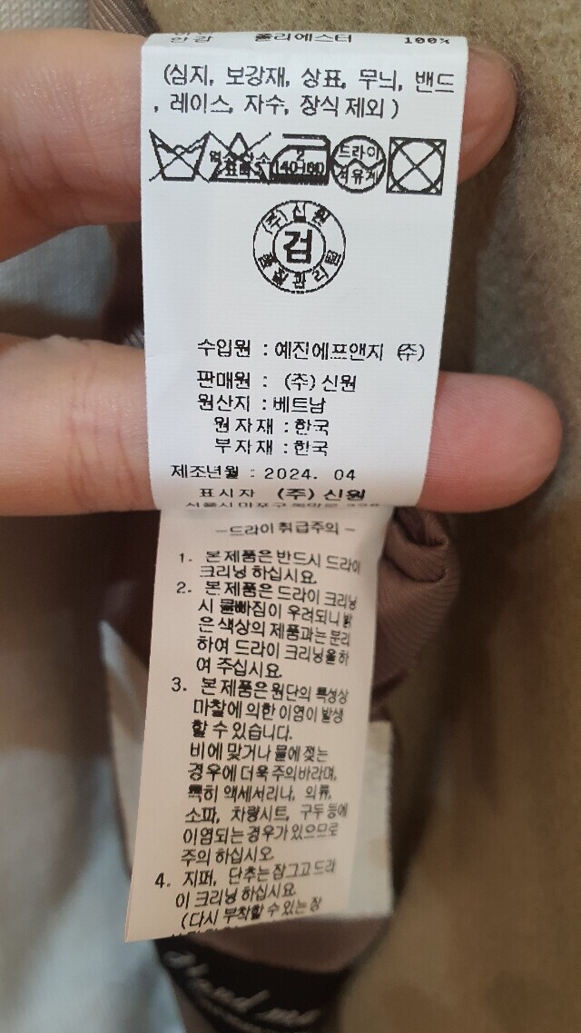 | 6. 세탁방법 및 취급시 주의사항 | 상품상세참조 |