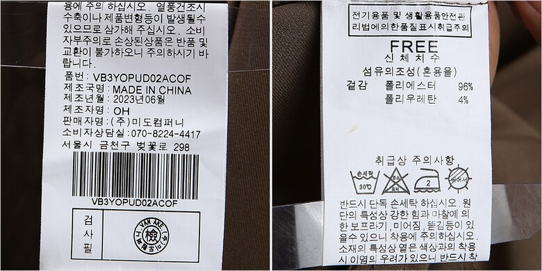 | 1. 제품 소재 (섬유의 조성 또는 혼용률을 백분율로 표시, 기능성인 경우 성적서 또는 허가서) | 겉감-폴리에스터96% 폴리우레탄4% |
