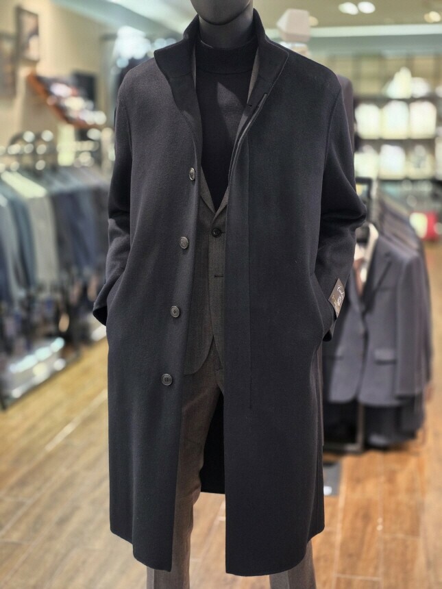 [바쏘옴므] WSZ4CJ33ABK F/W 캐시미어 오버핏 하이넥 롱코트