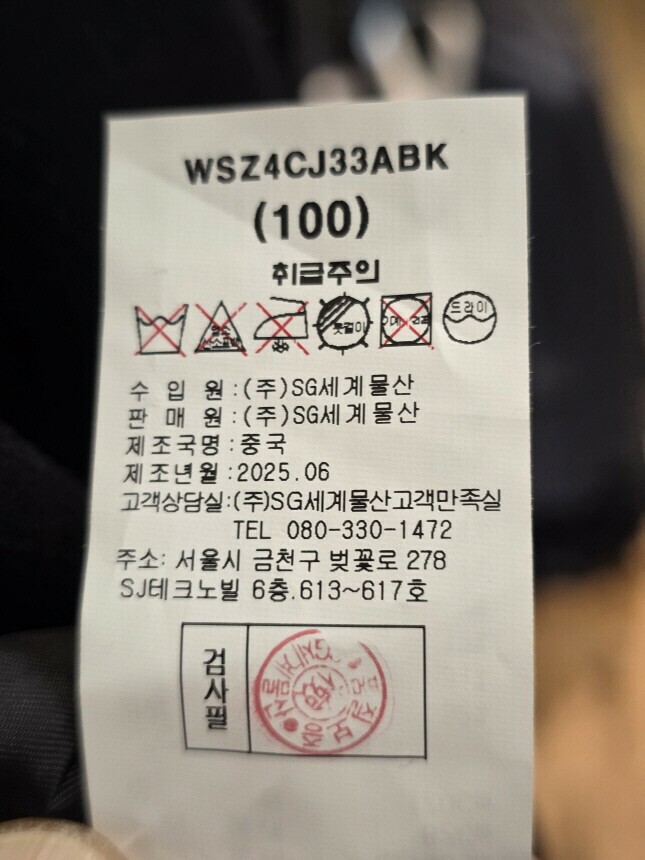 겉감 : 모 51% , 폴리에스터 32% , 캐시미어 12% , 니알론 2% , 앙고라 1% , 아크릴 1% , 레이온 1%