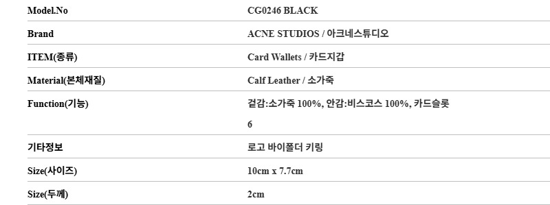아크네스튜디오 CG0246 BLACK (900) 로고 바이폴더 키링 카드지갑