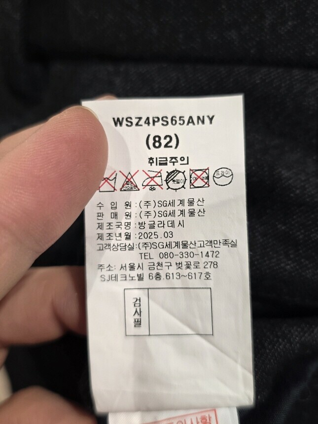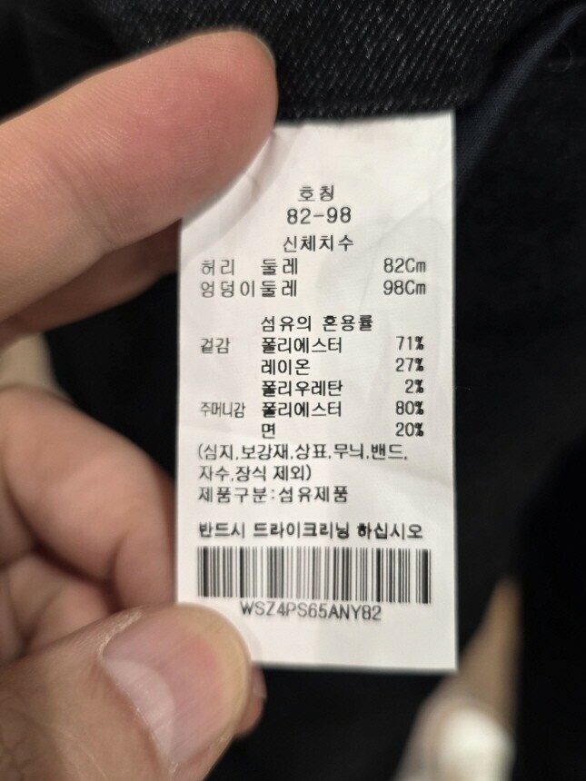 겉감 : 폴리에스터 71% , 레이온 27% , 폴리우레탄 2%