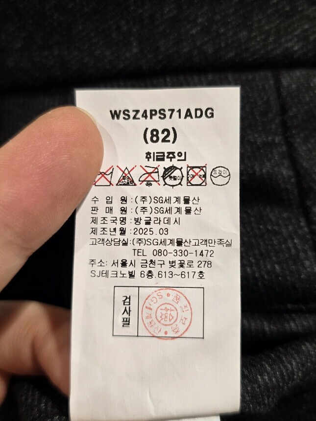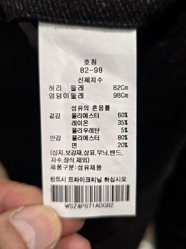 겉감 : 폴리에스터 60% , 레이온 35% , 폴리우레탄 5%