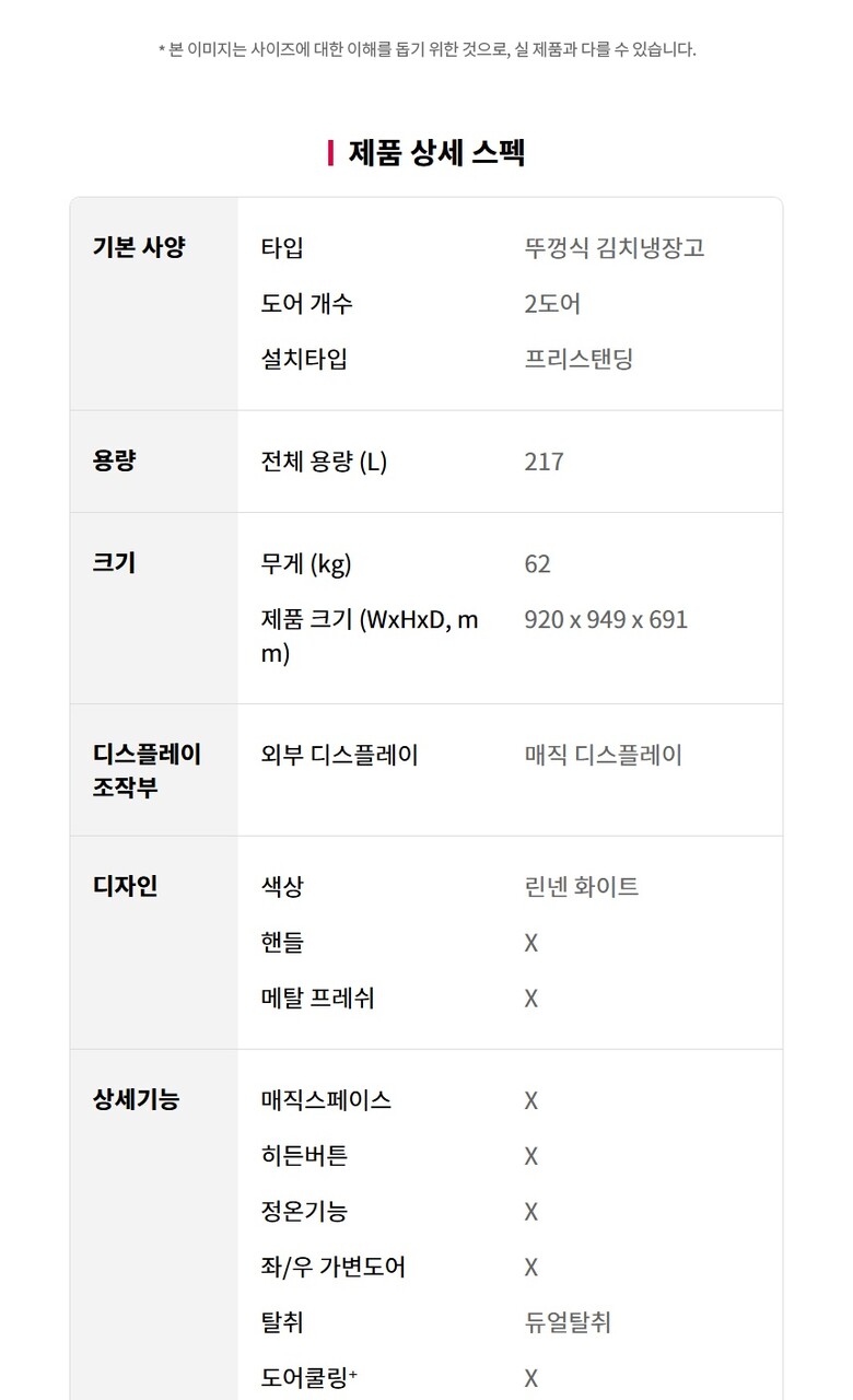 6. 크기/무게(폭x높이x깊이)(cm) 920x949x691mm, 217L, 뚜껑형 김치냉장고