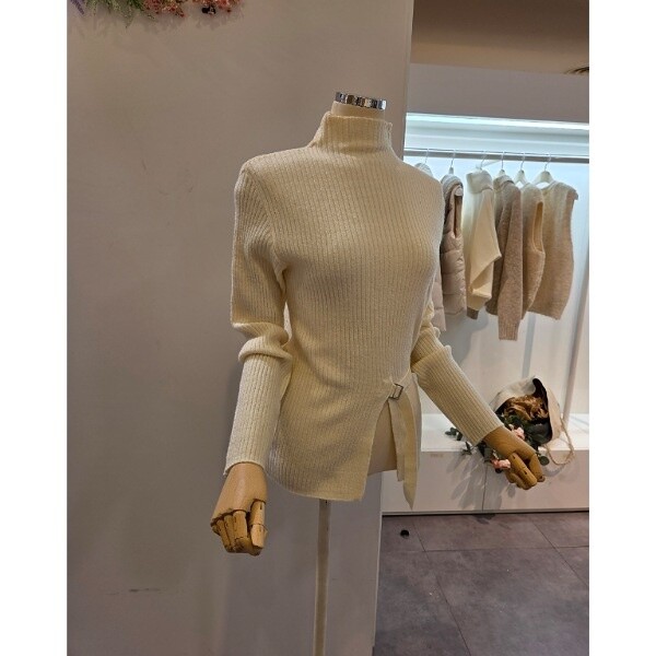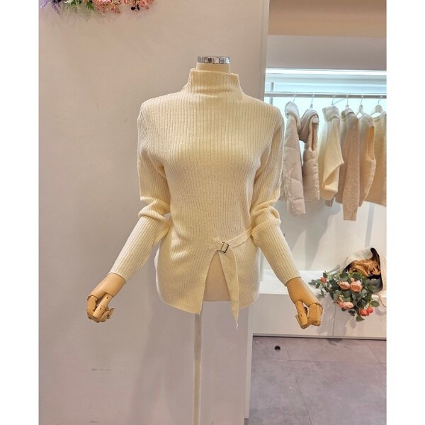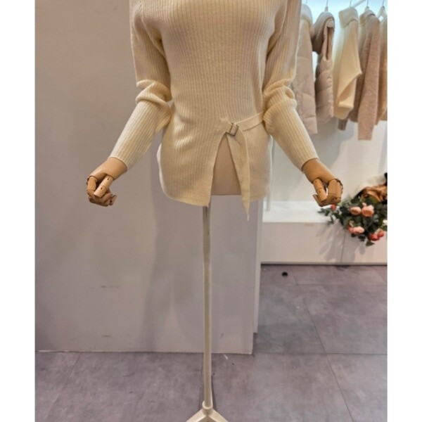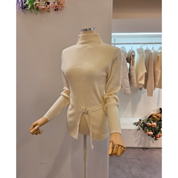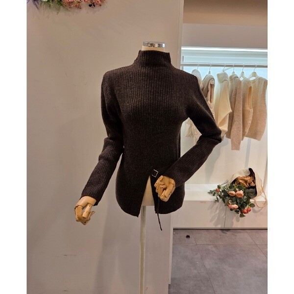CP8WKP09_사이드 벨트 슬릿 골지 니트