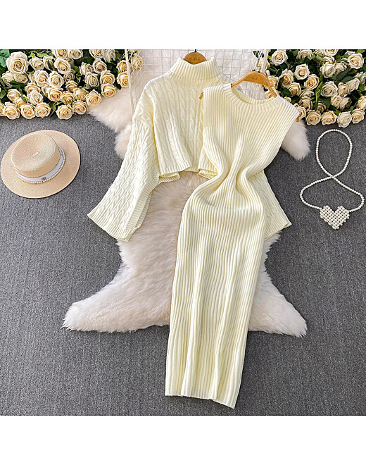 - 클라셰 실루엣민소매니트원피스+니트SET_B5W0116