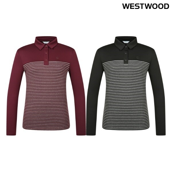 WO4WTTP444_우먼 배색 스트라이프 폴로 티셔츠