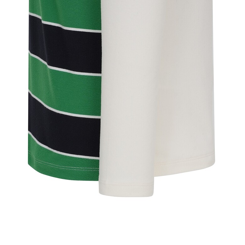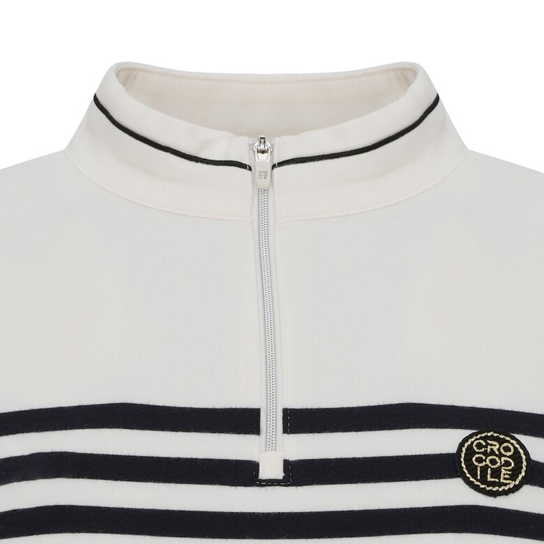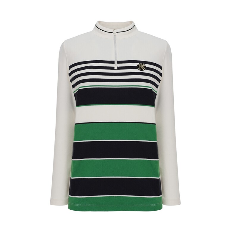 부드러운 코트나 소재를 사용하였고 전판 선염 스트라이프가 캐주얼하면서도 스포티한 반집업 티셔츠