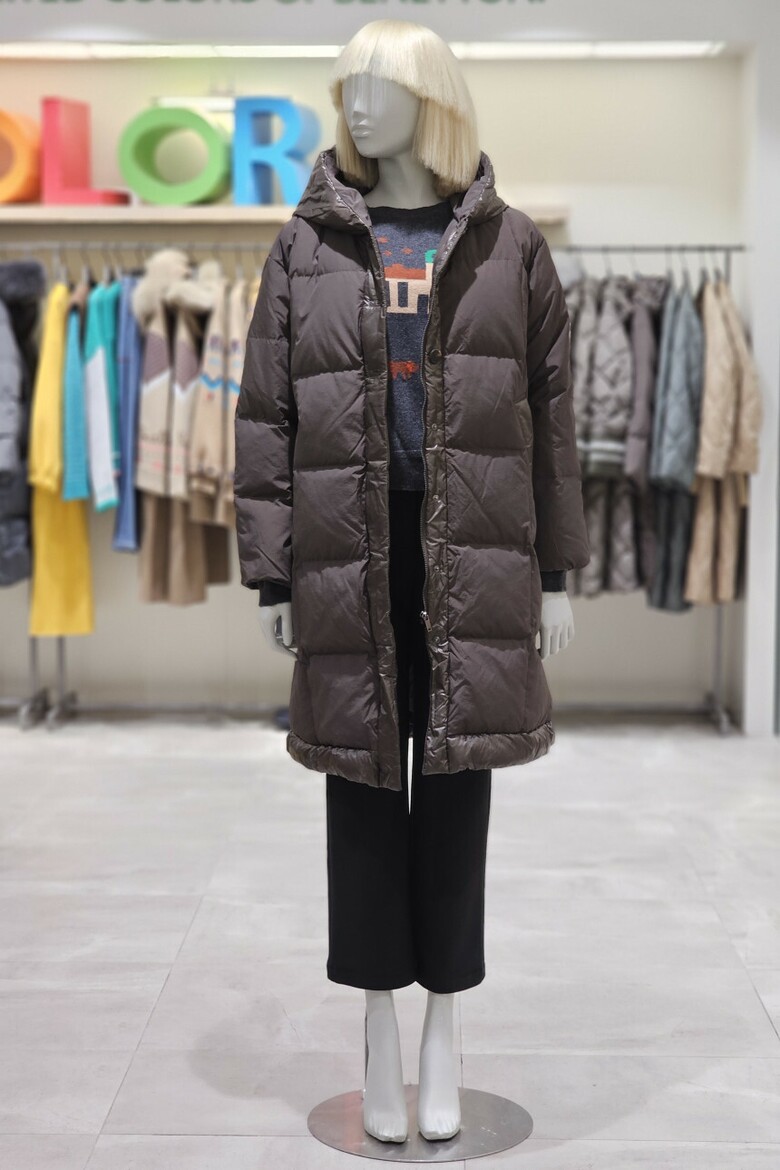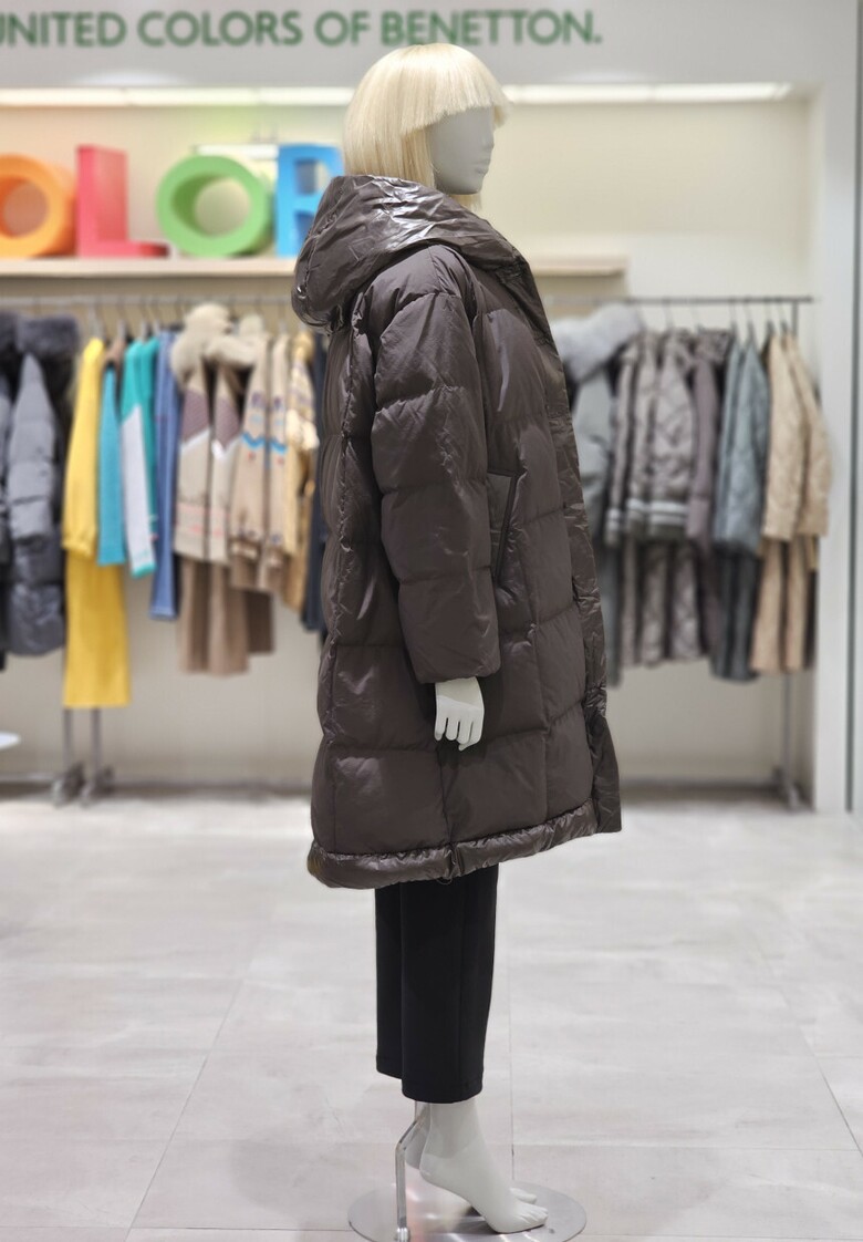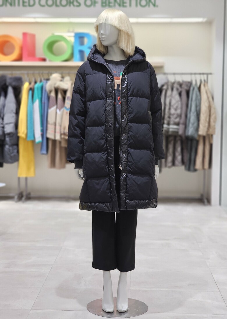 베네통 샤이닝 배색 후드 덕다운 패딩 BAPDG2461