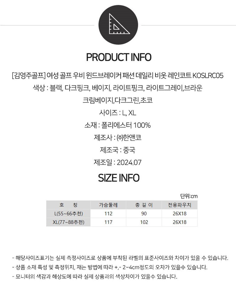 [김영주골프]여성 골프 우비 윈드브레이커패션 데일리 비옷 레인코트 KOSLRC05