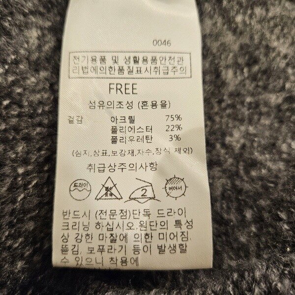 제품소재 : 겉감-아크릴75%, 폴리에스터22%, 폴리우레탄3%