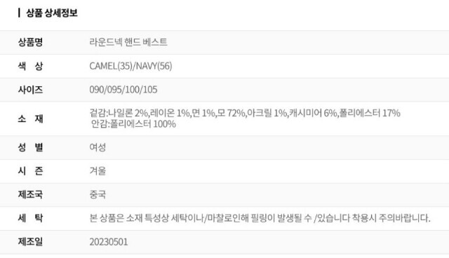 • 처음 배송된 상품상태와 다를 경우(세탁/착용 후 외출하신 경우) 반품이 불가합니다.