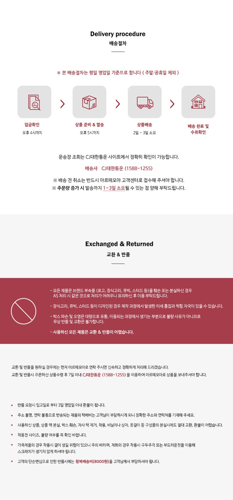 반품 유의사항