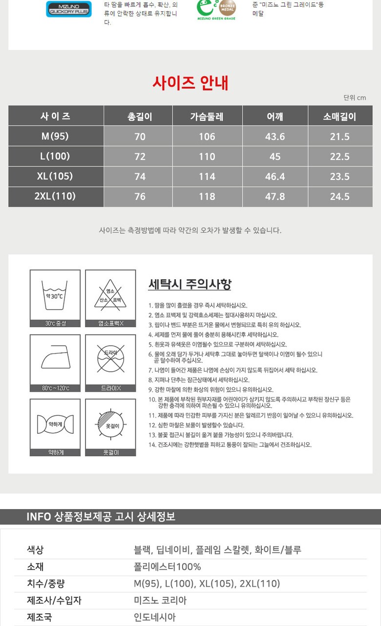 | 9. A/S 책임자와 전화번호 | 미즈노코리아/02-3143-3358 |