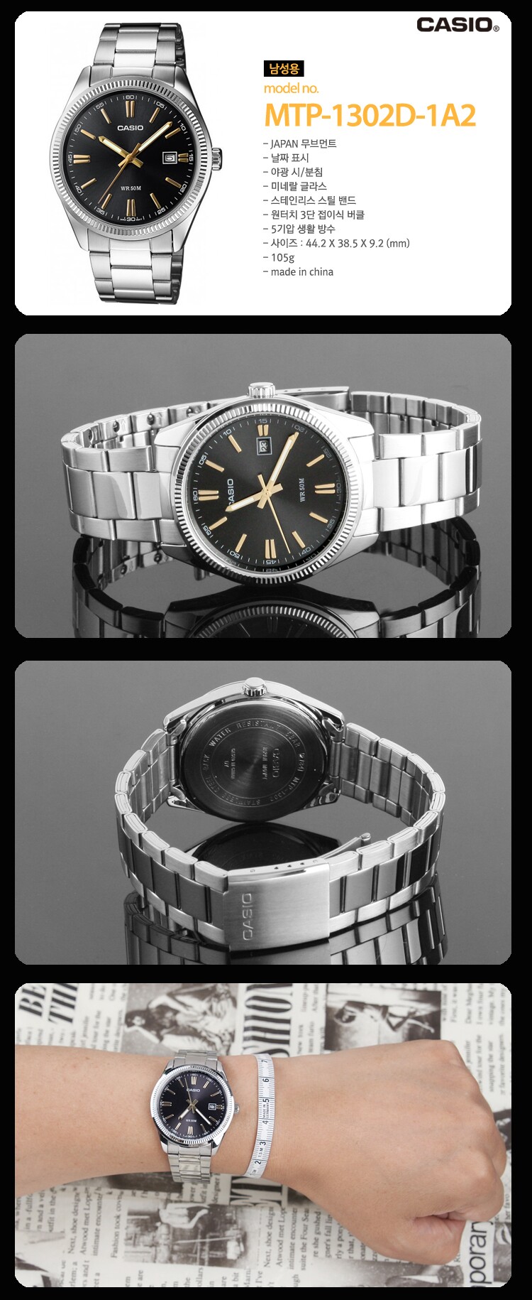 CASIO MTP-1302D-1A2 남성 메탈 시계