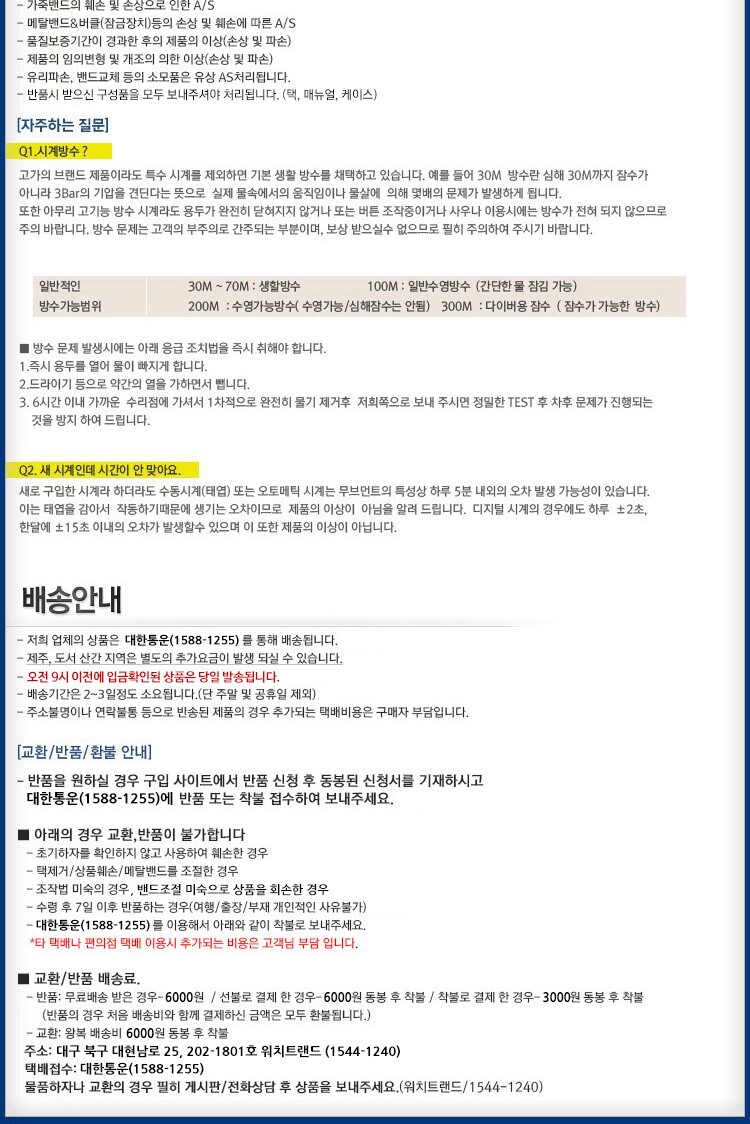 | 7-2. 시계 - 기능, 방수 등 | 상세페이지참조 |