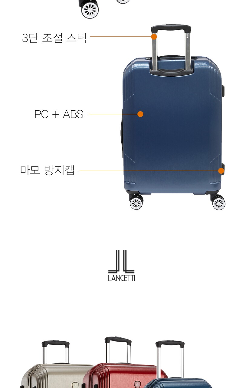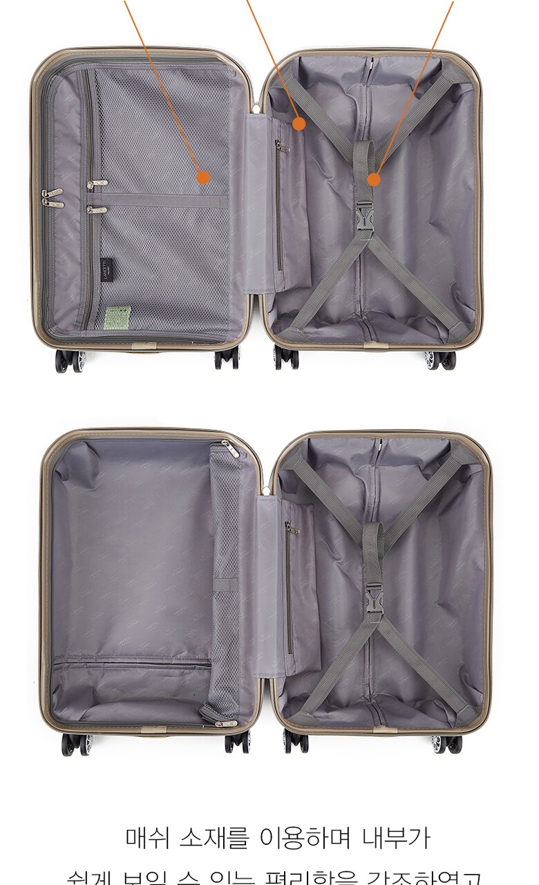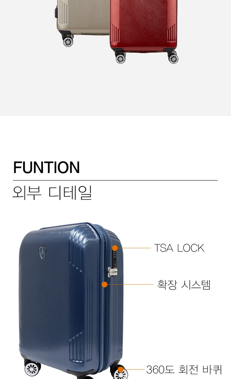 - PC+ABS 소재의 더블힐 바퀴의 확장형여행용 캐리어 입니다.
