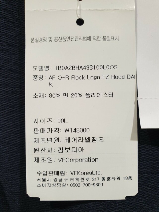 이 카드는 VF Korea Ltd 에서 정식수입되는 제품에 발급되는 헤리티지 정품 보증 카드로