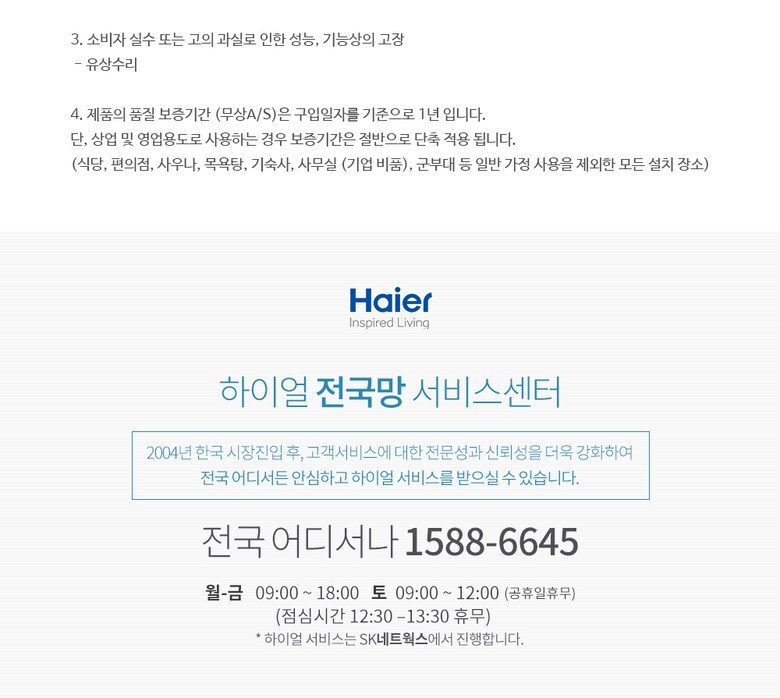 11. A/S책임자와전화번호 | 하이얼 1588-6645 |