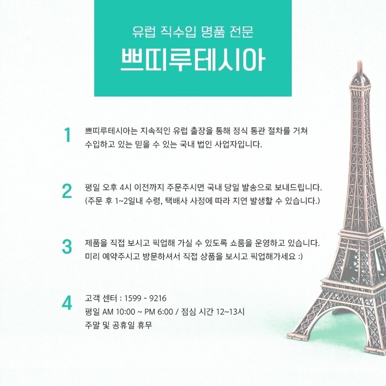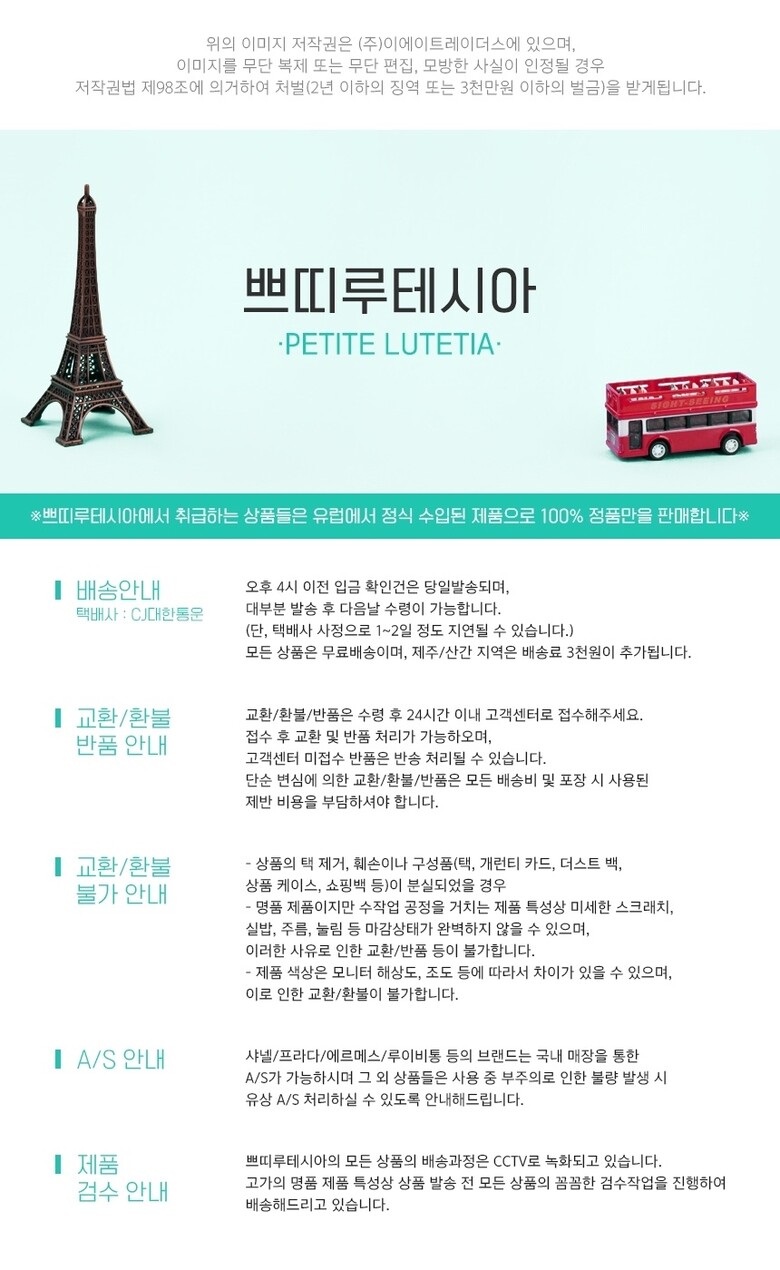 상품불량에 의한 반품, A/S, 품질보증 및 피해보상 등에 관한 사항은 소비자 분쟁해결기준(공정거래위원회 고시) 구매자가 미성년자인 경우에는 상품 구입시 법정대리인이 동의하지 아니하면 미성년자 본인 또는 법정대리인이 구매취소 할 수 있습니다. |