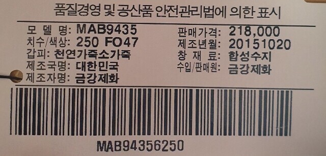 | 8. A/S 책임자와 전화번호 | 금강제화 02)2067-3766 |