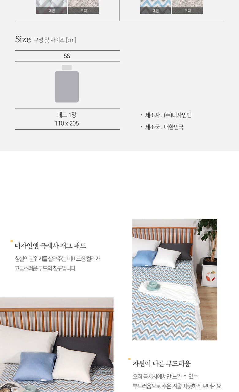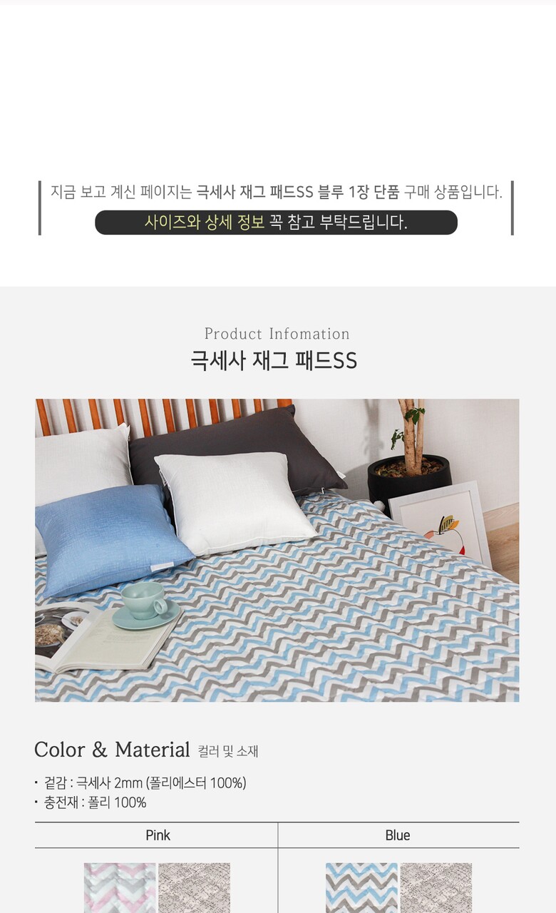 [디자인엔] 극세사 재그 패드SS-블루