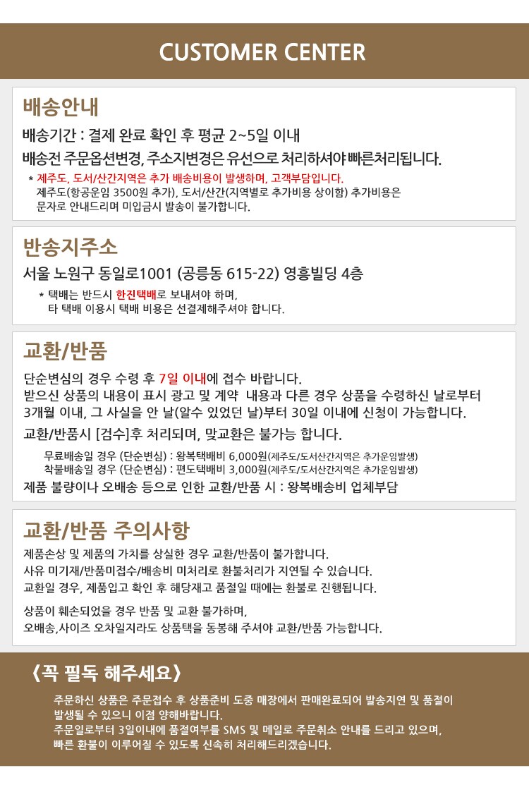 반품 유의사항