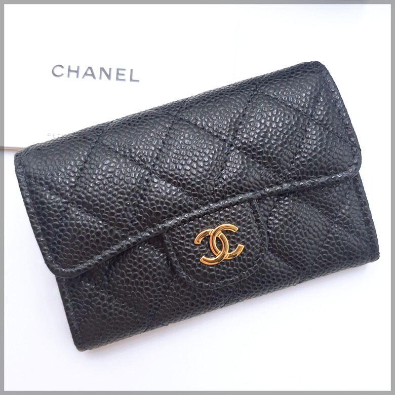 샤넬클래식 카드지갑 캐비어 블랙 골드 / 샤넬 카드홀더