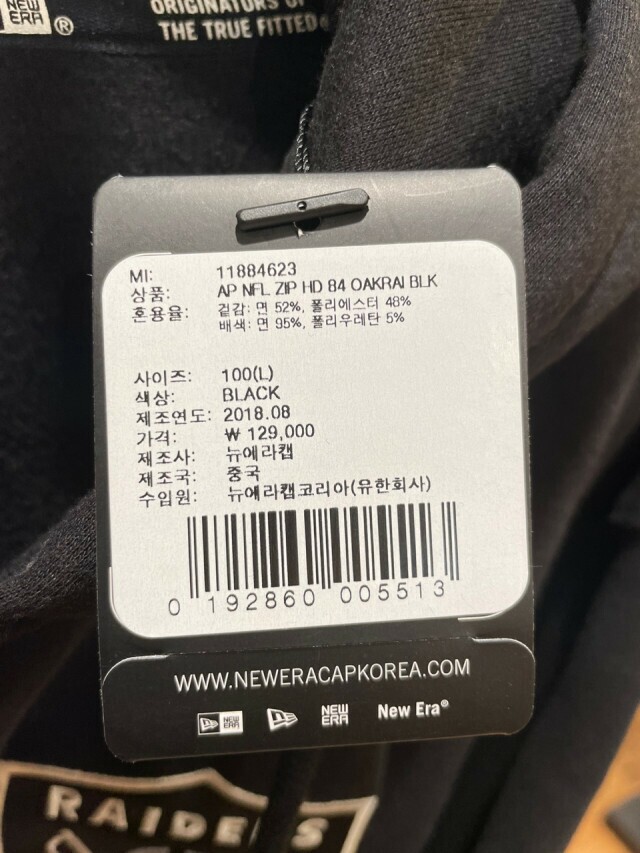뉴에라 NFL 오클랜드 레이더스 후드 집업 블랙 11884623