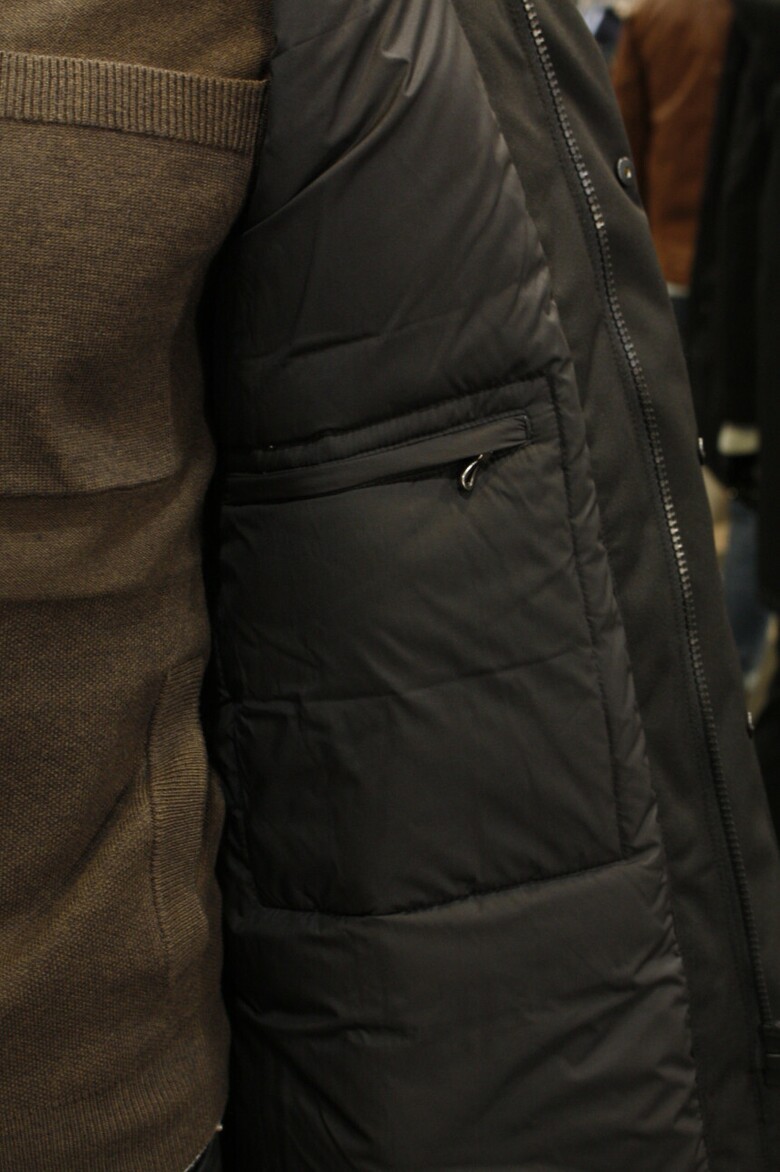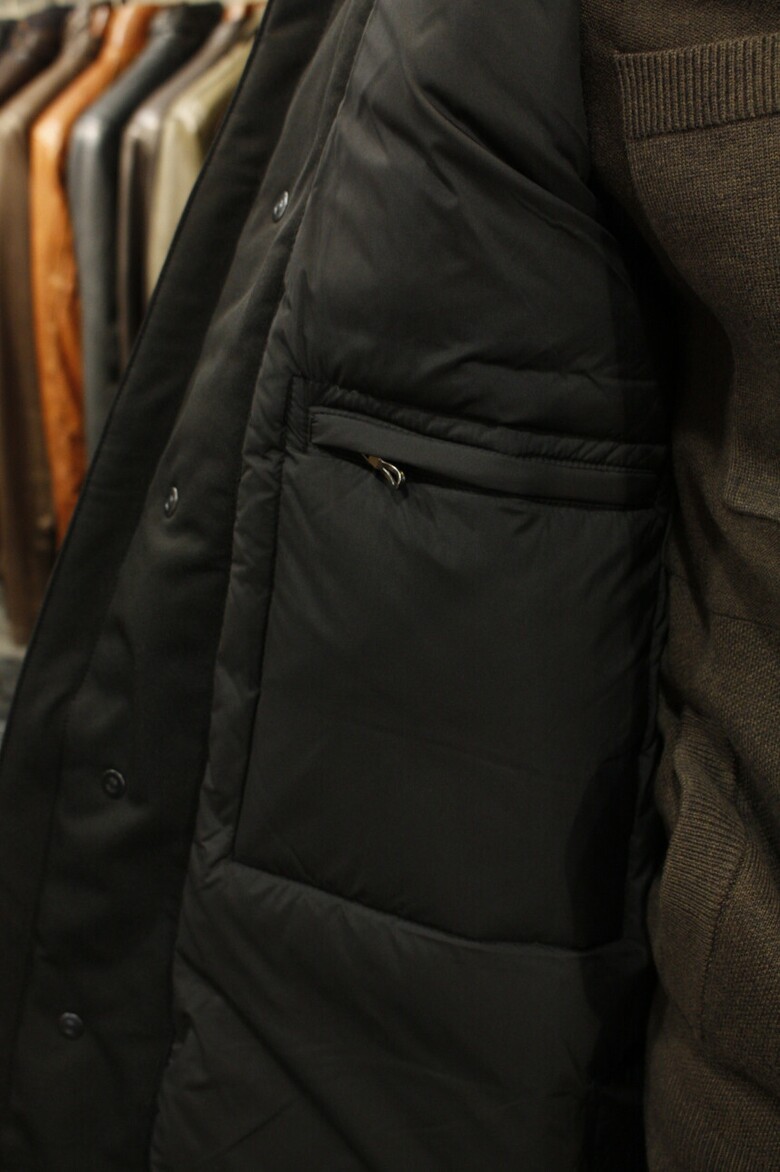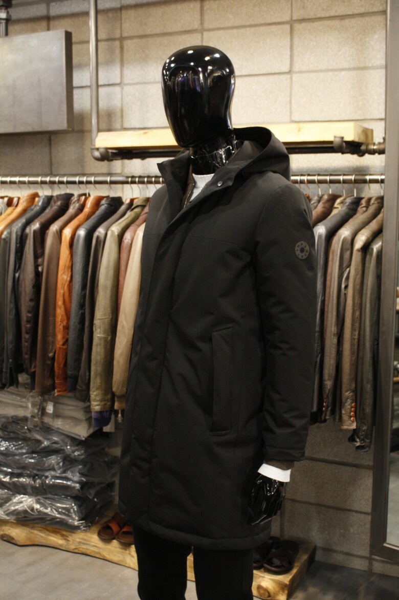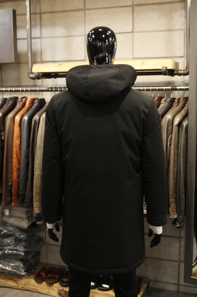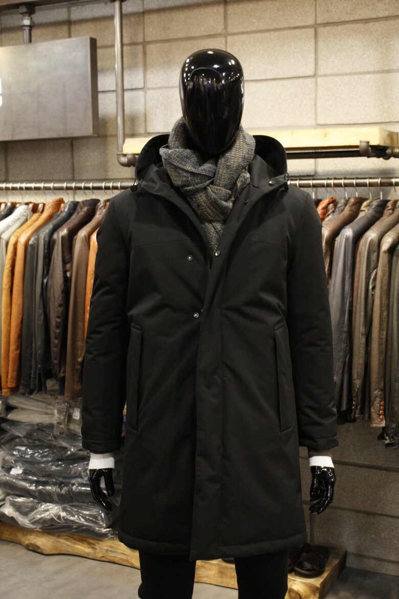 깔끔한 블랙컬러의 코튼원단 겉감이 부드러우며 내피에 두껍지않은 오리털로 슬림한느낌의 다운점퍼입니다