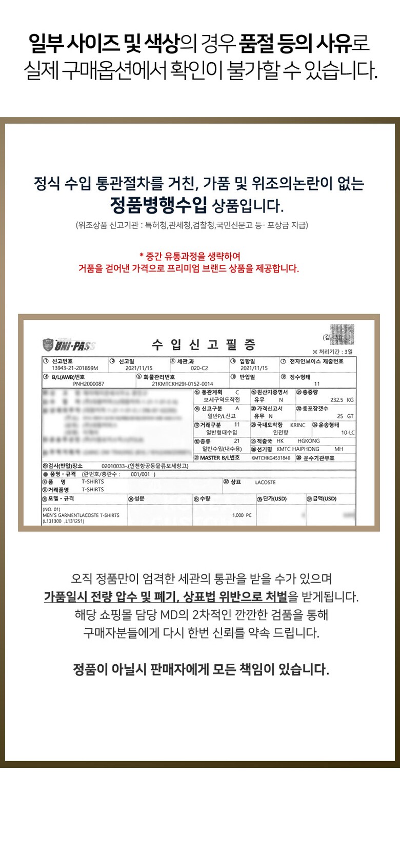 • 아울렛 상품의 특성 상 “택이 훼손”된 경우가 있으나 이는 불량이 아니며 무료 반품 대상 상품이 아닙니다.