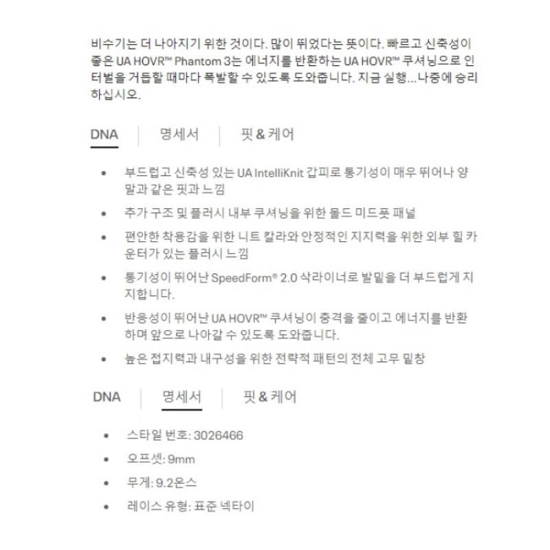언더아머 호버 팬텀3 론치 런닝화 러닝화 신발 슈즈1 (3026466_100)