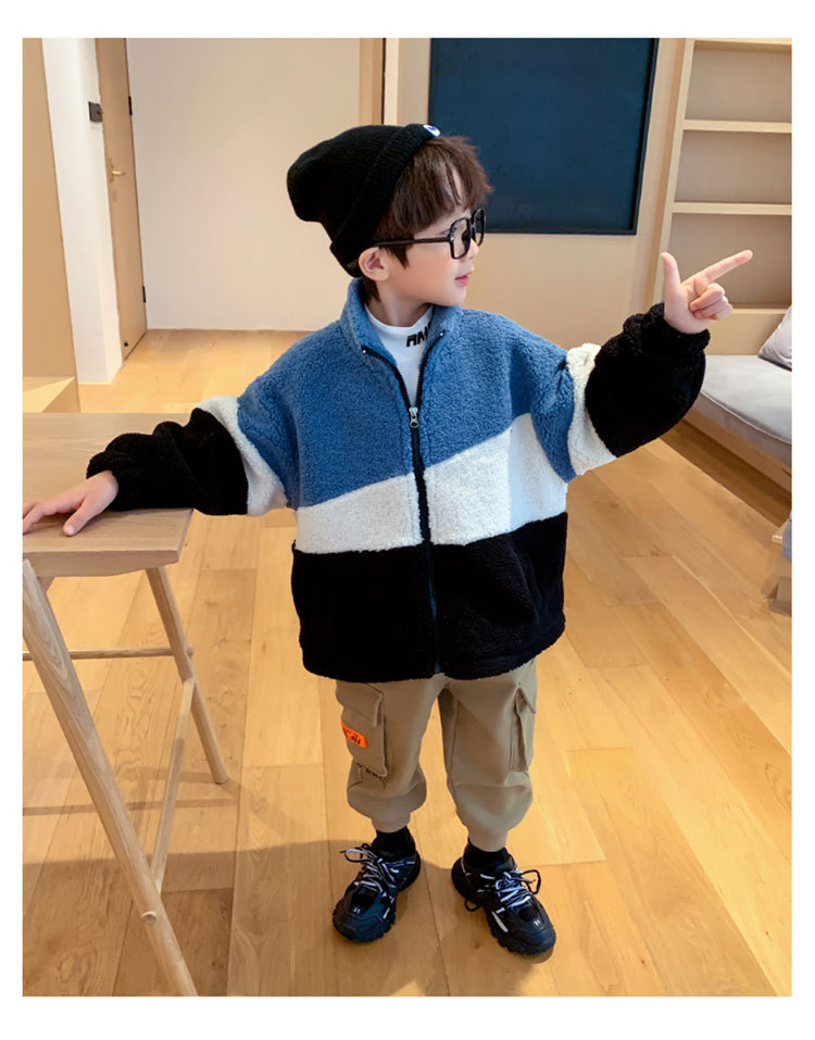 [예약발송] 배색 절개 양털 점퍼 R7125