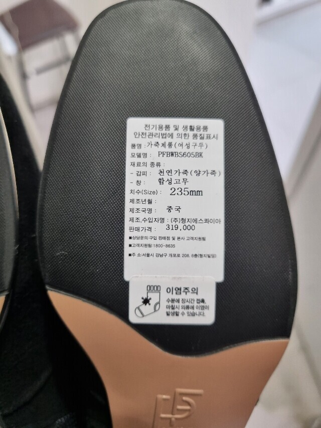 1. 제품 소재 (운동화인 경우에는 겉감, 안감을 구분하여 표시) 양가죽
